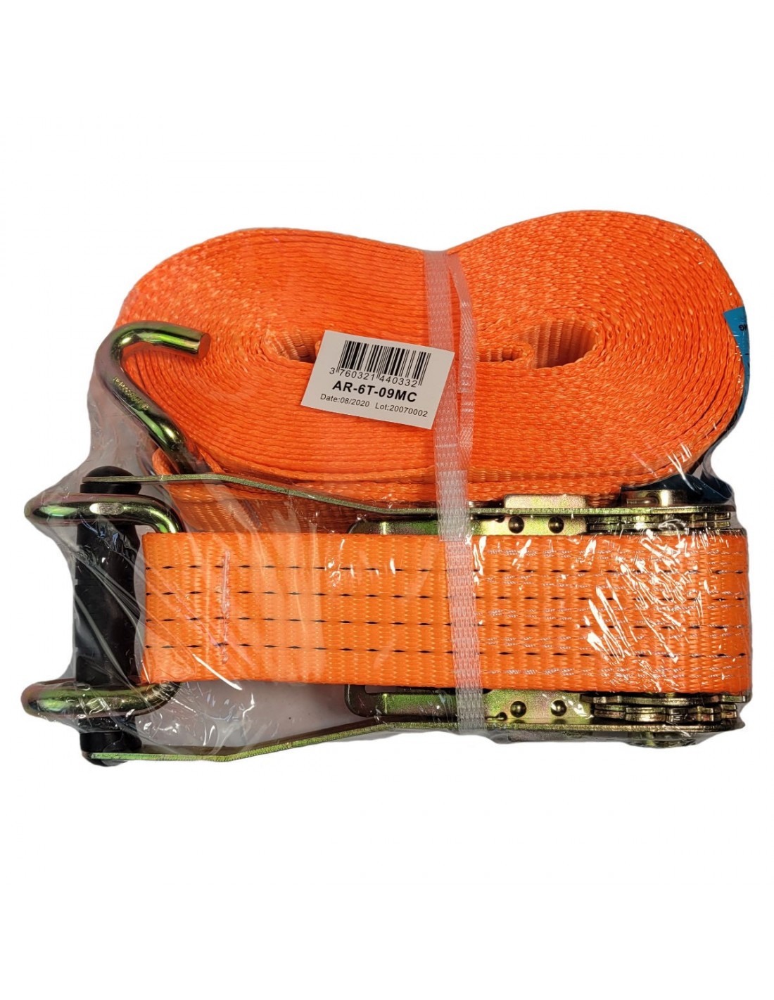 Arrimage 9 mètres LC 2000-4000 daN crochet écarté sangle 50mm orange